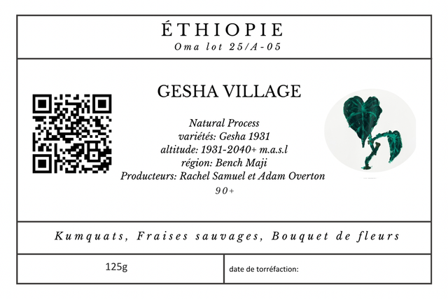 1x125g Natural Oma Gesha Village (notes de Fraises sauvages, Kumquat, bouquet de Fleurs)